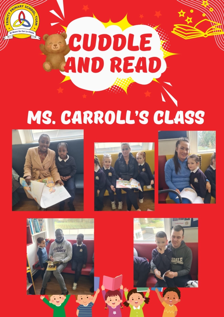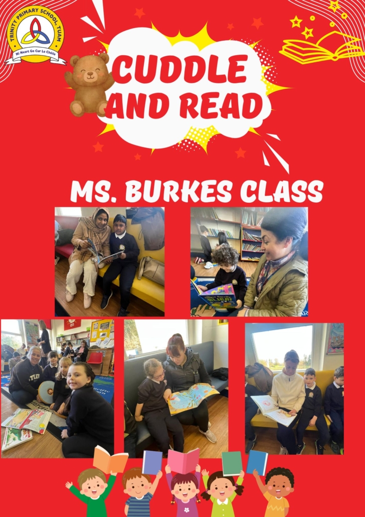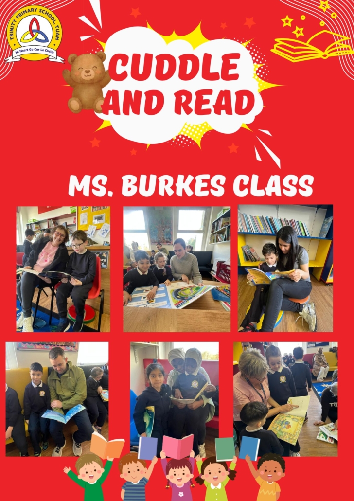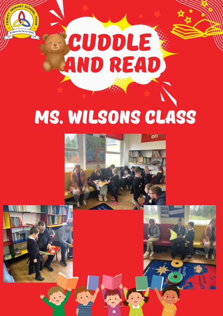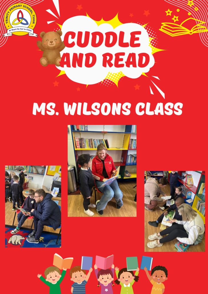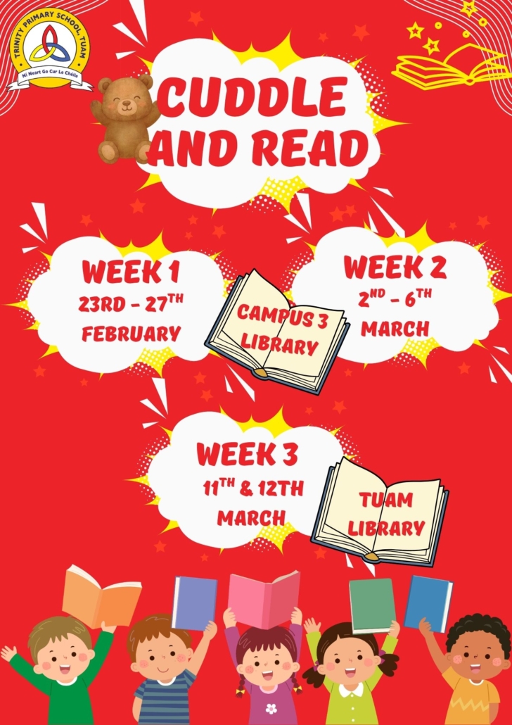 Cuddle and Read is a wonderful opportunity for parents of Senior Infants to cuddle up with their child and enjoy the wonders of reading together. This is a TPS initiative organised by our HSCLs to promote storytelling in the home and provide access to books for families. This enhances wellbeing and sets the foundations for literacy skills and positive language experiences.