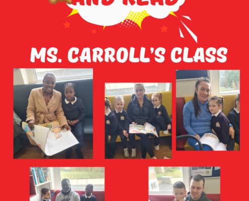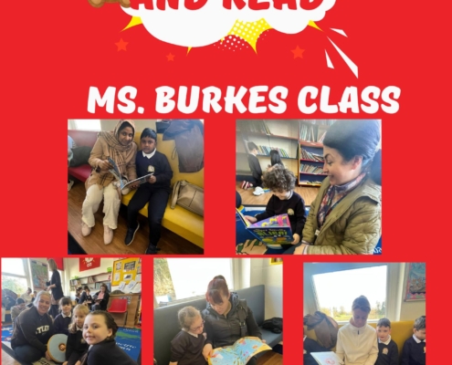 Parents of Senior Infants pupils are invited to the TPS school library for two sessions, a week apart. For the third session the parents are invited to Tuam library where they meet the HSCL and local librarian in a supportive casual manner. They are given a tour of the library and supported to get library cards for themselves and their children. They are also given information about online library resources such as Borrow Box and LOTE4Kids.