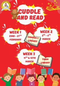 Later the parents are joined by their child’s class in the library. They are encouraged to choose books together and “Cuddle and Read” a story. And of course borrow books to bring home.