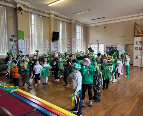 We were all decked out in our green today for Lá Glas, celebrating St. Patrick’s Day!