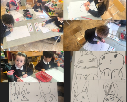 We kicked off our morning getting creative, painting colourful Easter eggs and drawing the Easter Bunny
