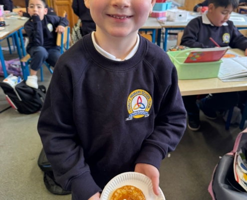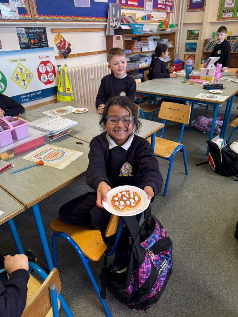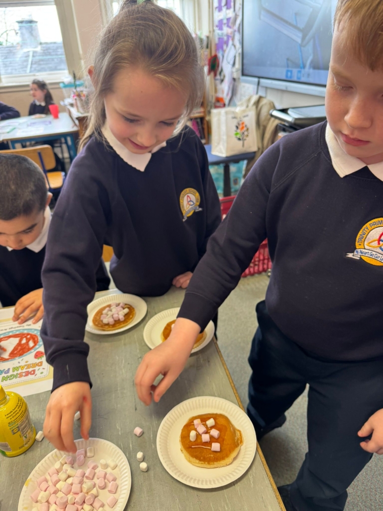 We celebrated Pancake Tuesday by drawing pictures of delicious pancakes with our favourite toppings. Then we brought our ideas to life when we decorated real pancakes! We really enjoyed eating them together. 🥞