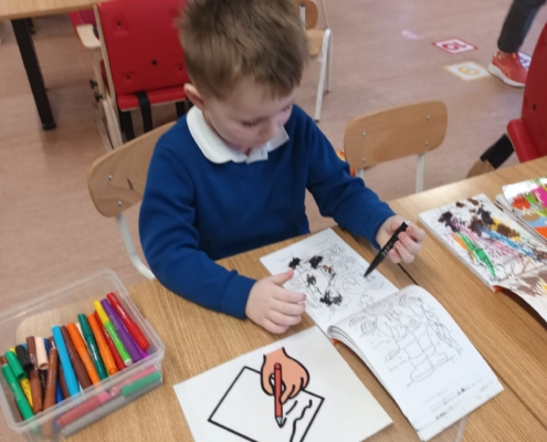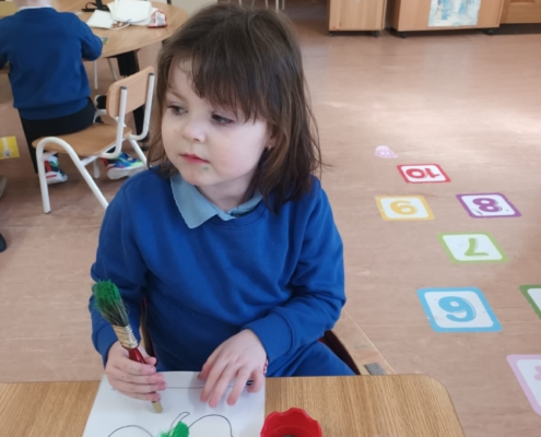 In art, the class got creative painting beautiful shamrocks, bringing a lovely splash of green to the classroom as we get ready for St. Patrick’s Day. ☘️🎨