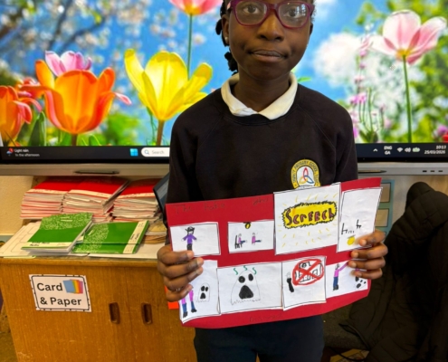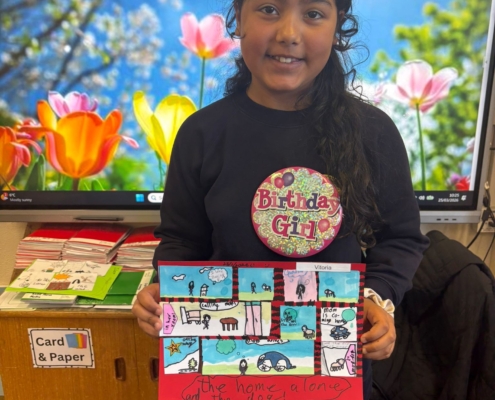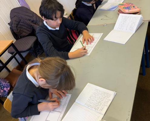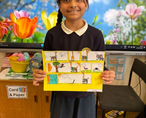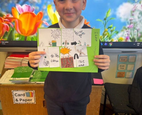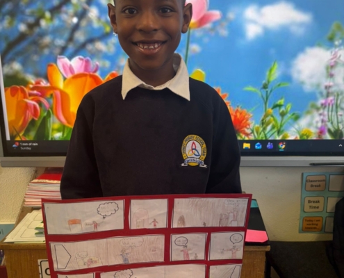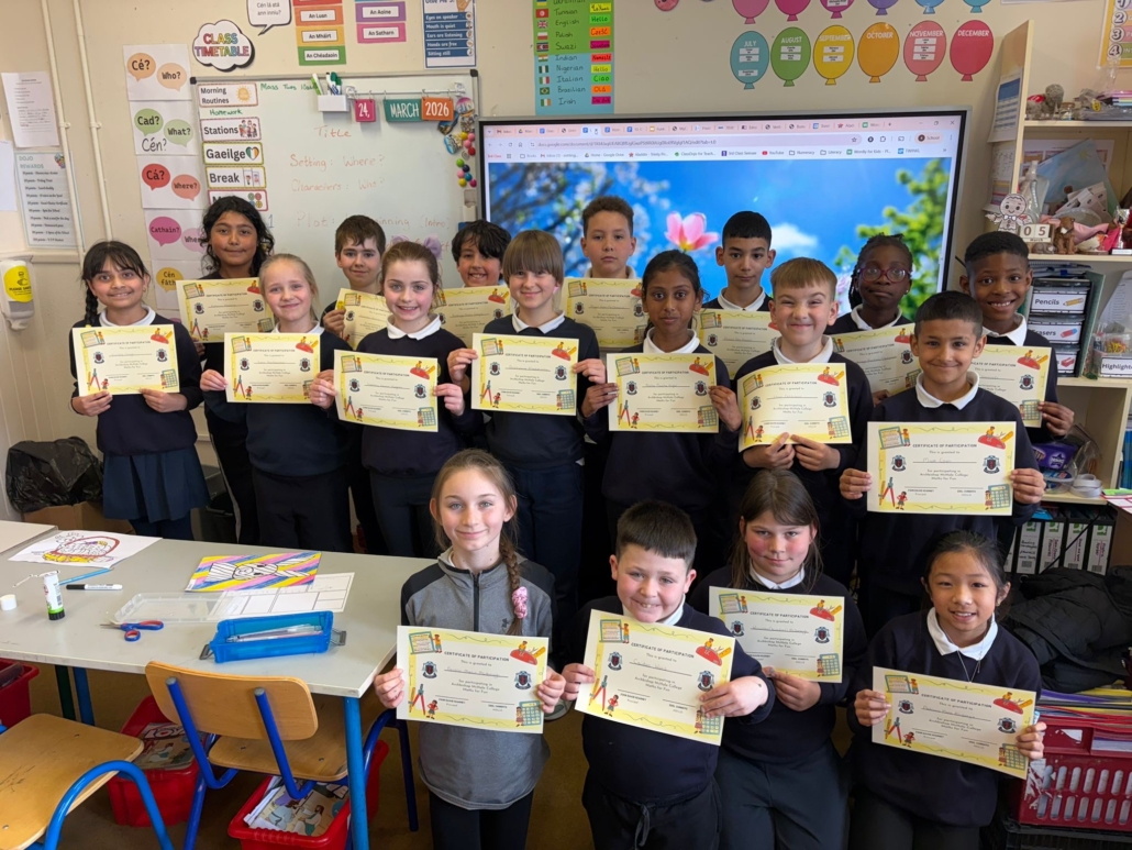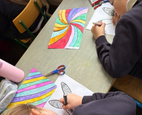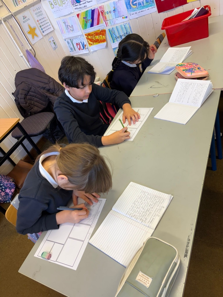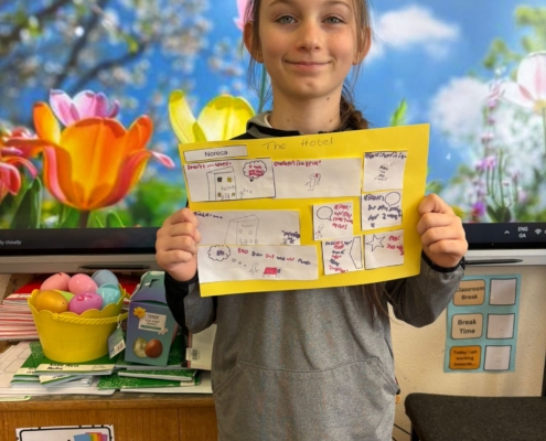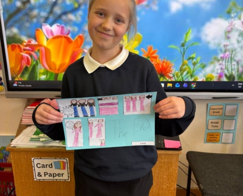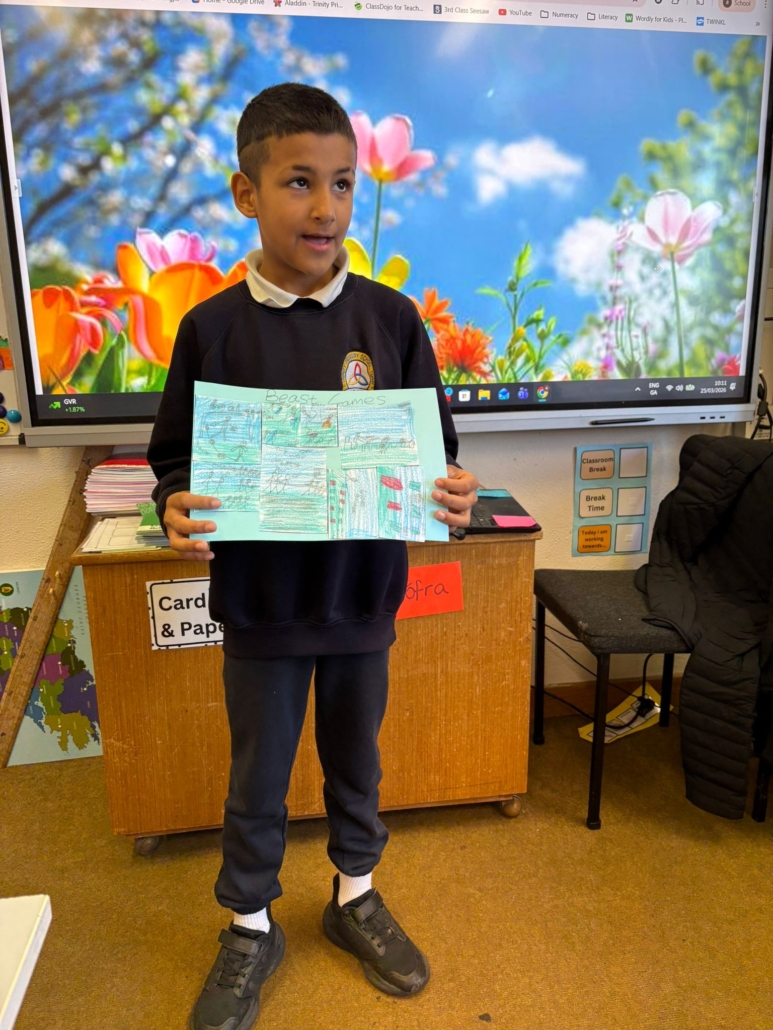 After Áine Ní Ghlinn’s inspiring visit to 3rd class yesterday, where we explored the magic of “wordless books,” the creativity continued today as we created our very own wordless stories! 🖍️📖